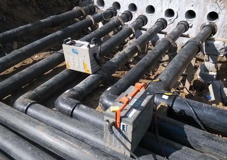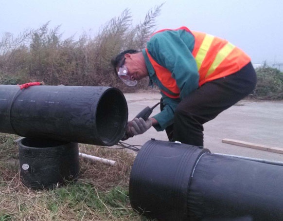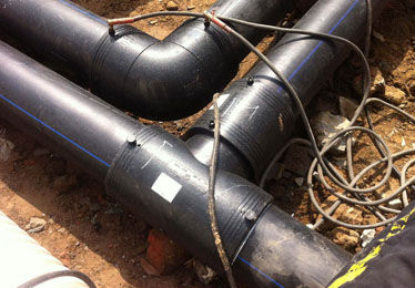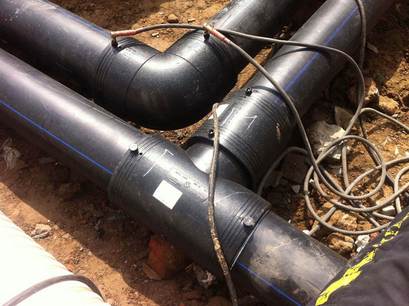 安裝工藝流程:備料—刮削氧化層—清潔焊接面—標(biāo)記承插深度—檢測(cè)管件線圈—轉(zhuǎn)配管件—檢查配合—固定連接處—管件編號(hào)—焊接—冷卻—局部回填—試壓驗(yàn)收—整體回填